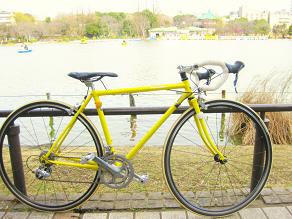 友人お気に入りの自転車はポップなイエロー。