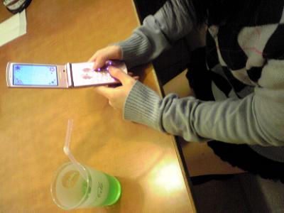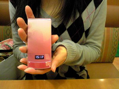 今年の元旦に購入したというdocomoのN-01B。新年を迎えるにあたり、気持ちもケータイも新たにしたかったそうですが、ケータイショップは意外にもたくさんのお客さんで混み合っていたそうです。決め手はデザインで、初めて持ったケータイから全てピンクの機種を使っているとのこと。彼女の持ち物はピンクが多いという印象はありませんが、ケータイだけはピンクに統一しているのだそう。もうひとつ他の機種と迷い、カメラにフラッシュが付いている点に惹かれてこれを選んだ模様。ケータイカメラは普段デジカメ以上に使い、大学で友人と遊んでいる様子を撮ることもあるんだとか。