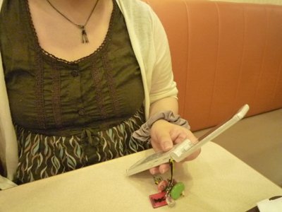 使い始めて2年ほど経つdocomoのP-01Aです。そろそろ電池パックを交換したいんだとか。また、ケータイの待ち受け画面は、サマーウォーズのキャラクターでした。映画を観に行った際に購入したパンフレットに、掲載されていたバーコードから無料でゲットしたんだそう。パンフレットに、無料でゲットできる待ち受け画面のバーコードが載っていたりするのだと、初めて知りました!