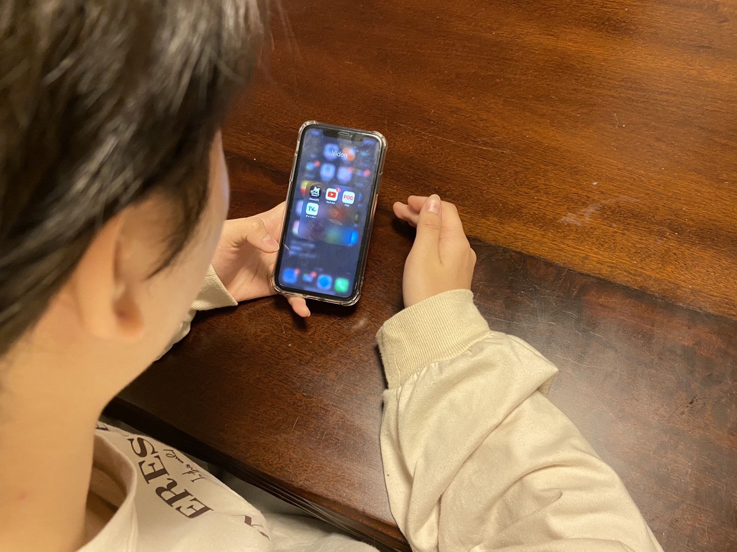 Yさんが利用しているのはiPhone11。以前使用していたiPhone8は本体に水が入ったことにより画質が悪くなったため2月頃に変えたそうです。使用しているケースは100円ショップで購入した透明のケース。携帯にケースをつけていないと傷がつきそうで心配なため欲しいケースが見つかるまでの“とりあえず”のケースだそうです。充電が足りなくなるということが少なく、モバイルバッテリーは持ち歩いていないそうです。